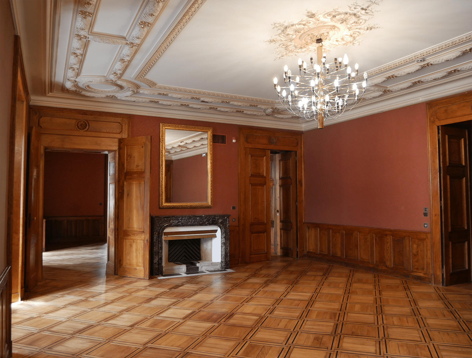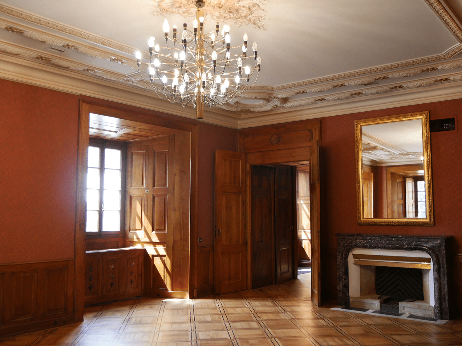 Le Château est composé de différents espaces : hall et salons au rez-de-chaussée, salle d’exposition au sous-sol et au 3ème étage.