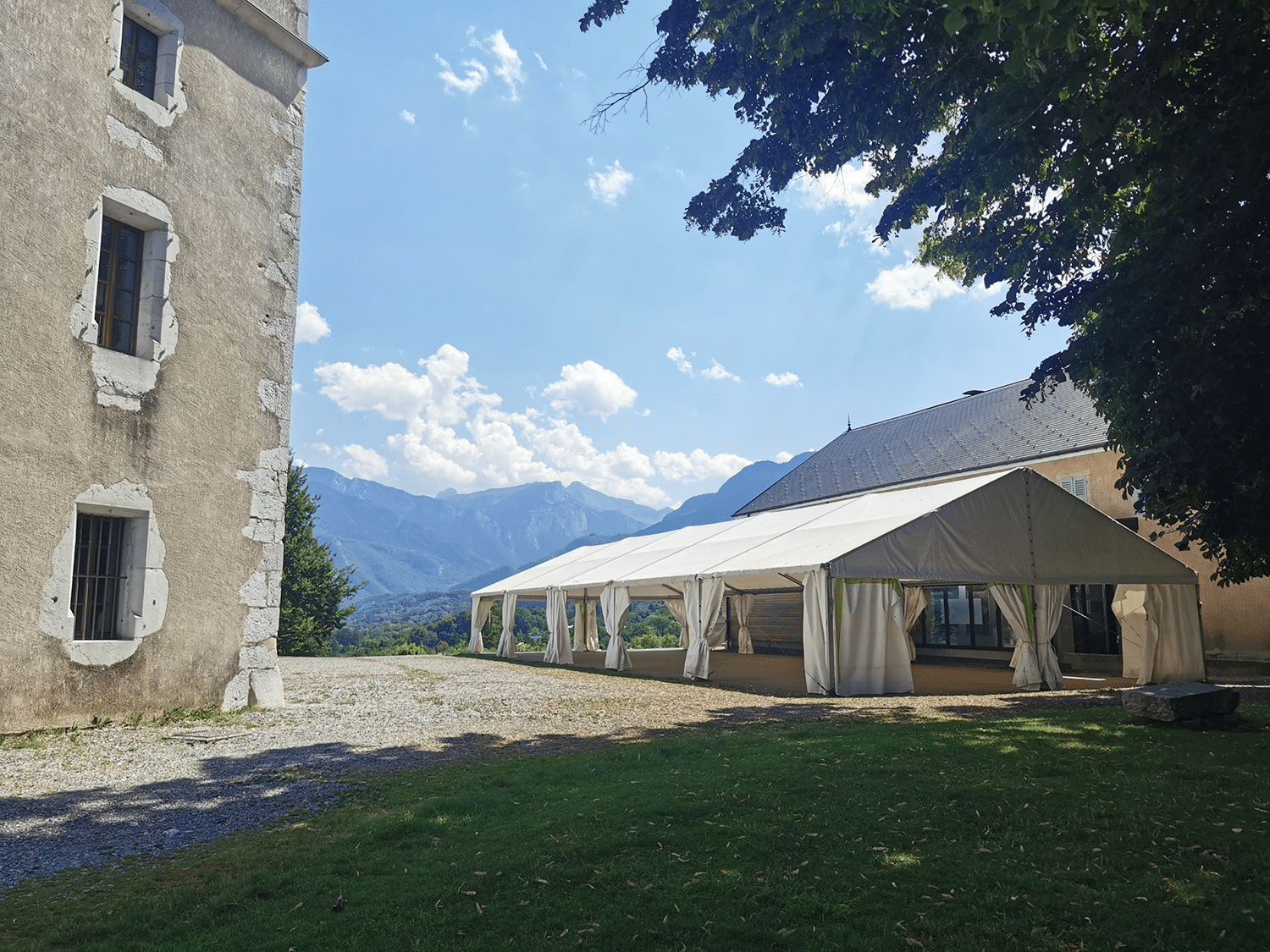 Installé sur le parvis du Château, le chapiteau offre une vue magnifique sur le parc du quartier du Plain Château.